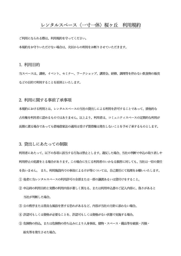 レンタルスペース一寸一休のご案内