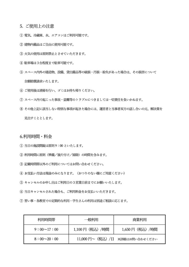 料金 1時間/ 1,100〜1,650円(税込・インボイス対応)。時間や利用条件についてはお気軽にご相談ください。
